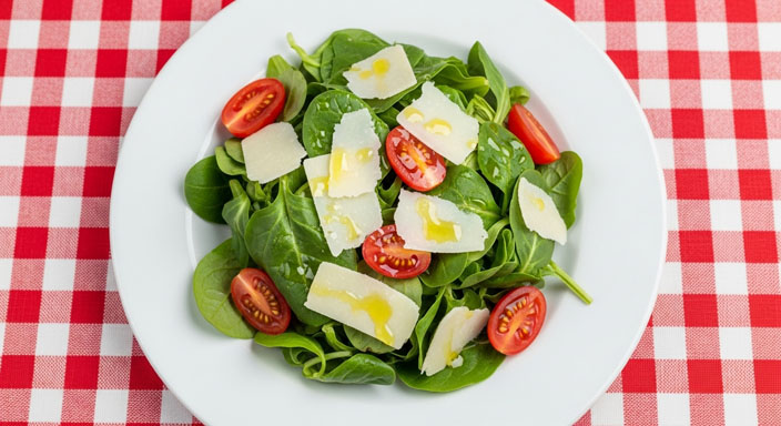 Rocca + Parmesan cheese + Cherry Tomatoes + Olive Oil