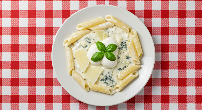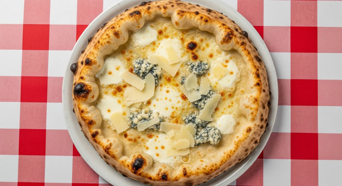White sauce + Bufala cheese + Mozzarella + Roquefort cheese + Parmesan cheese