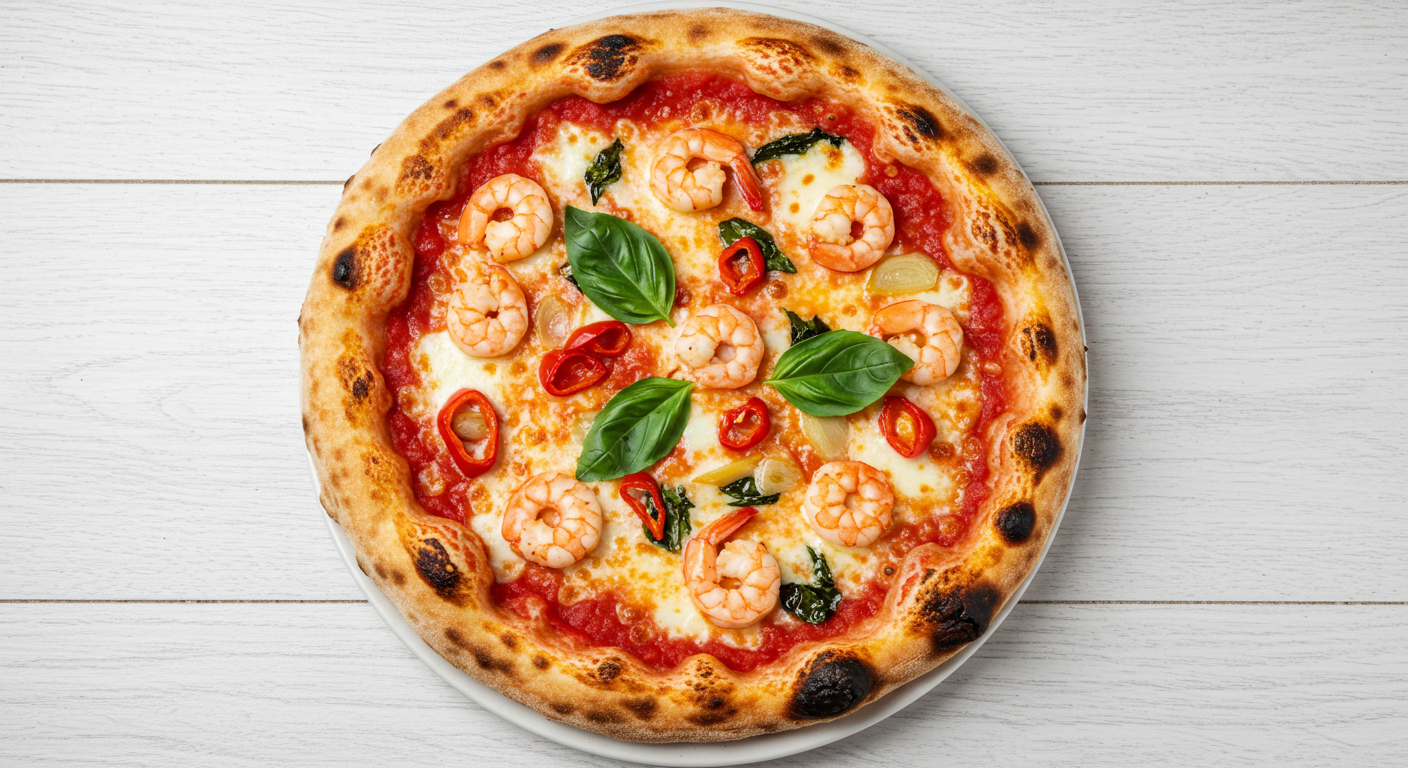 Tomato sauce + Bell Pepper + Mozzarella + Bufala Cheese + Capers + Shrimp