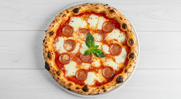 صلصة بيتزا الايطالية + موزريلا + موزريلا بوفالا الايطالية + ببروني + بارميجان